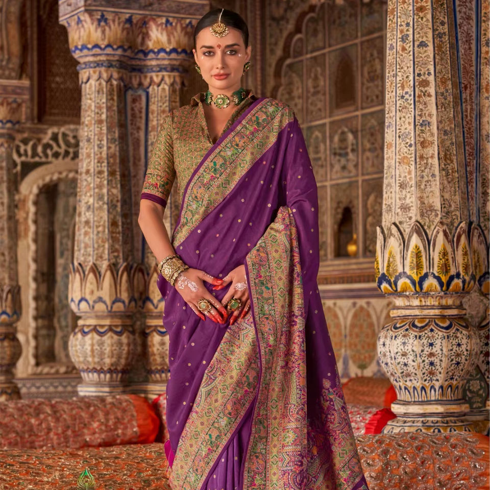 ชุดแต่งงานสไตล์ปากีสถานแบบดั้งเดิมผ้าส่าหรีผ้าไหมเนื้อนิ่มดีไซน์ปาโตลาที่สวยงามดีไซน์แบบอินเดีย