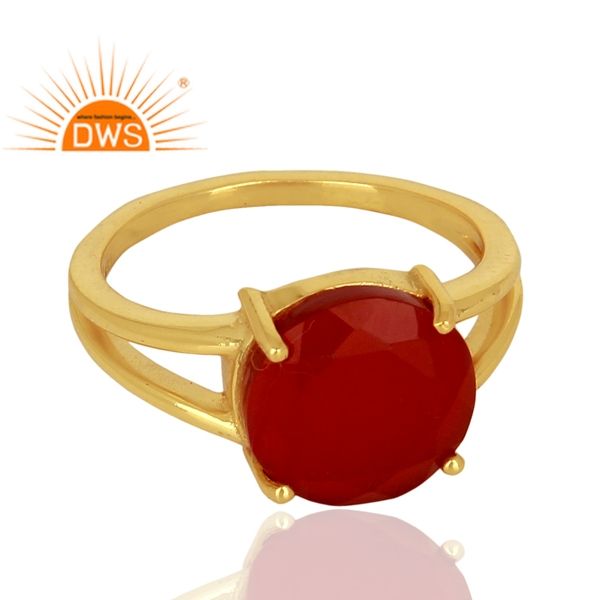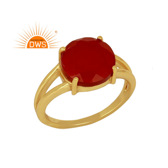แหวนเงินแท้ดีไซน์อินเดีย ชุบทอง 18K ประดับพลอยออนิกซ์สีแดงธรรมชาติ สำหรับผู้หญิง เหมาะเป็นของขวัญสำหรับเธอ