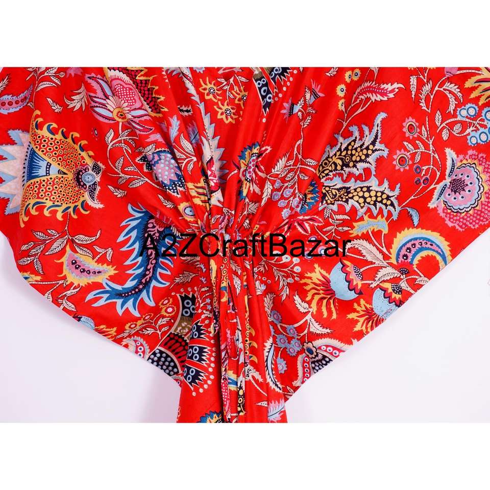 ชุดคลุมผู้หญิงพิมพ์ลายดิจิทัลสไตล์อินเดีย ผ้าฝ้าย 100% ความยาวเต็มตัว คอวี ผูกเอว แขนยาว ลายดอกไม้ สไตล์วันหยุด ฤดูร้อน