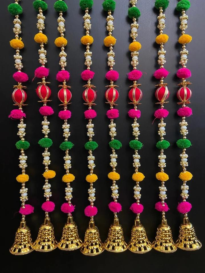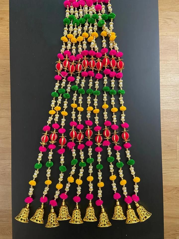 ชื่อสินค้า:พวงมาลัยปอมปอมหลากสีพร้อมกระดิ่งทอง
