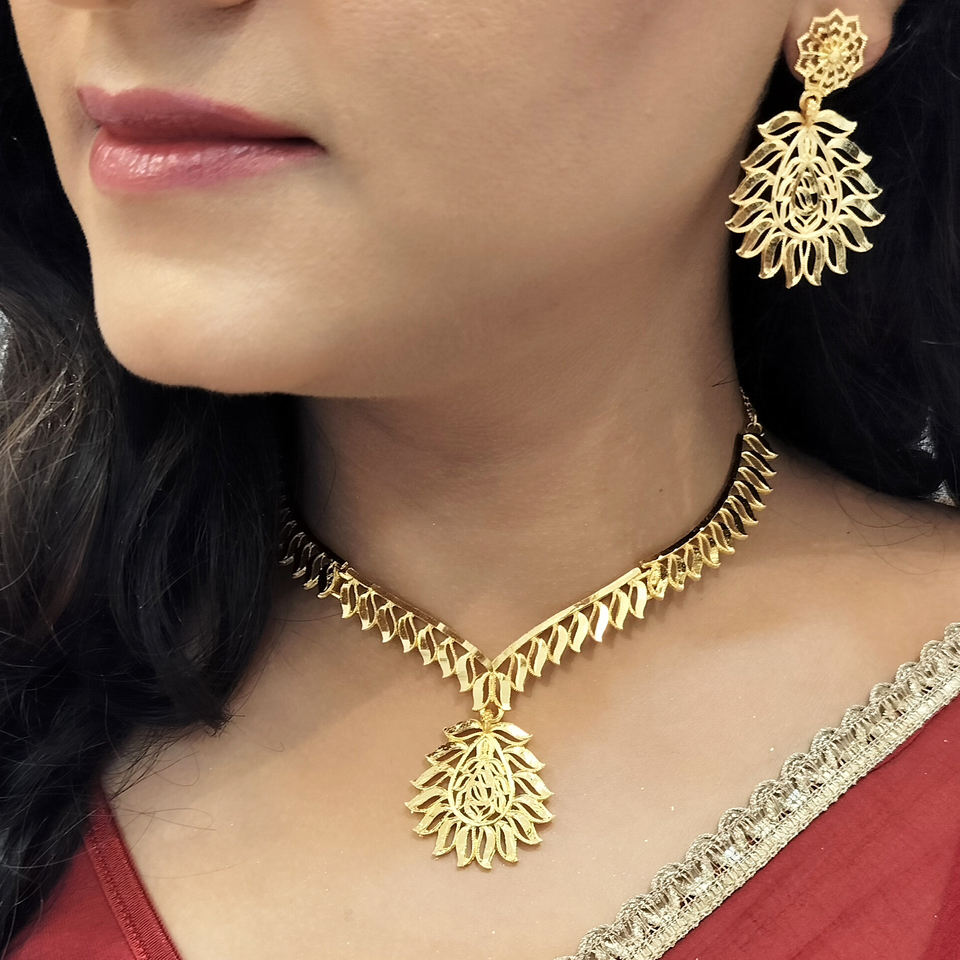 คุณสมบัติ:ประดับด้วยดอกไม้สร้อยคอชุบทองนี้