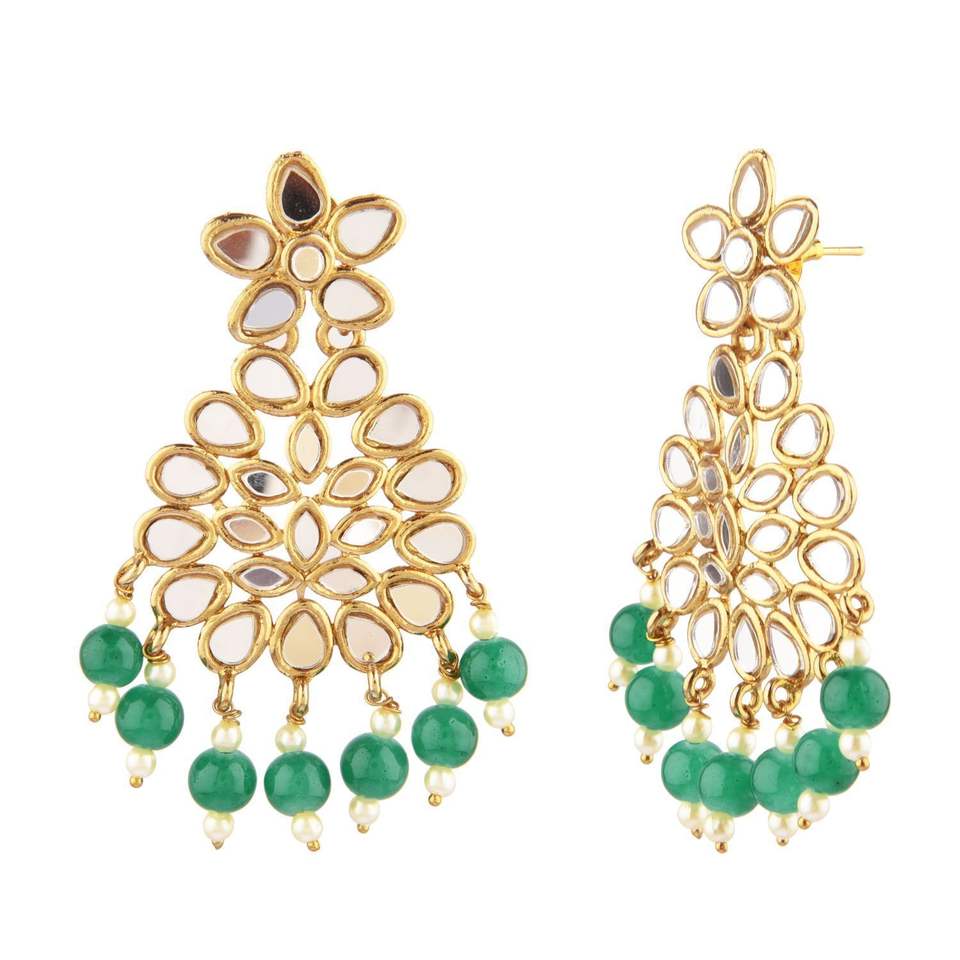 เครื่องประดับต่างหูอินเดียคริสตัลแก้วหิน Faux มุกลูกปัดห้อยต่างหูสำหรับผู้หญิง,สีเขียว