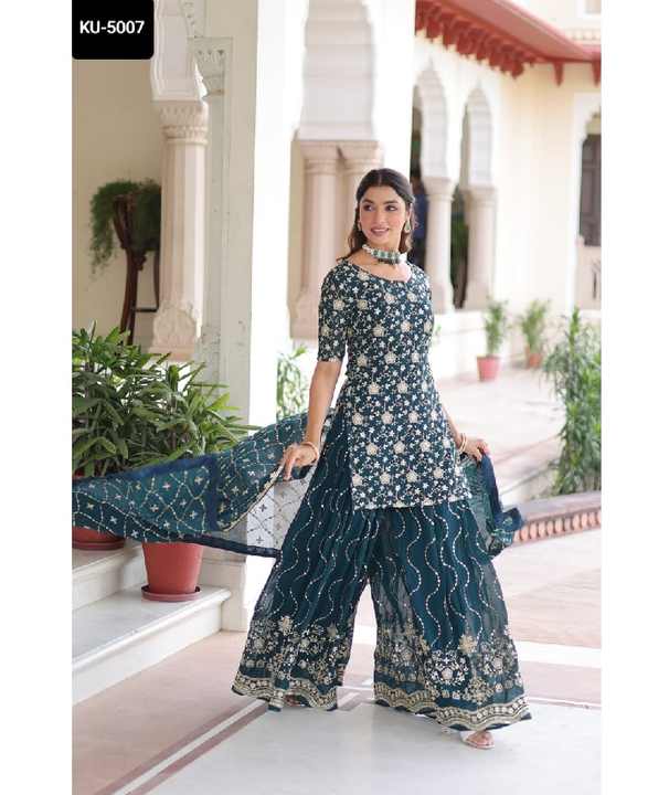 ชุดหนังเทียมจีออเจ็ตต์อินเดียประดับเลื่อมด้วยงานปักลายชุดชาราที่อุดมไปด้วยเลื่อม