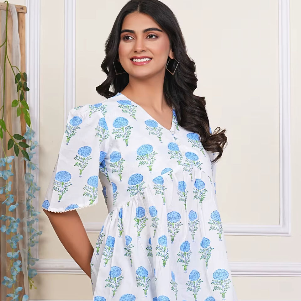 เสื้อพิมพ์ลายบล็อกผ้าฝ้ายชนเผ่าอินเดียเสื้อสั้นโบฮีเมียนลายดอกไม้แบบดั้งเดิมสำหรับใส่ไปงานปาร์ตี้แบบลำลอง