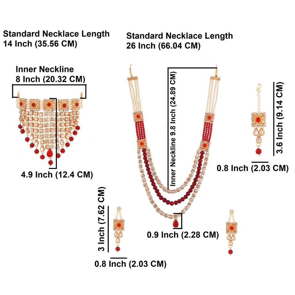 ชุดเครื่องประดับคอนเดนทิกก้าสำหรับผู้หญิง,ชุดเครื่องประดับสร้อยคอคอร์เกอร์คริสตัลลูกปัดมุกเทียมสไตล์พื้นเมืองอินเดียสีแดง