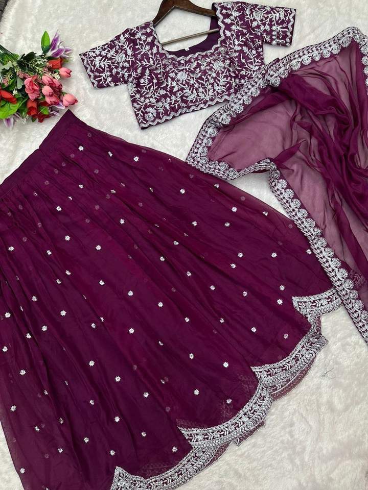 Lehenga ชุดแต่งกายสำหรับปาร์ตี้ชนชาติอินเดียพร้อมเสื้อเย็บปัก