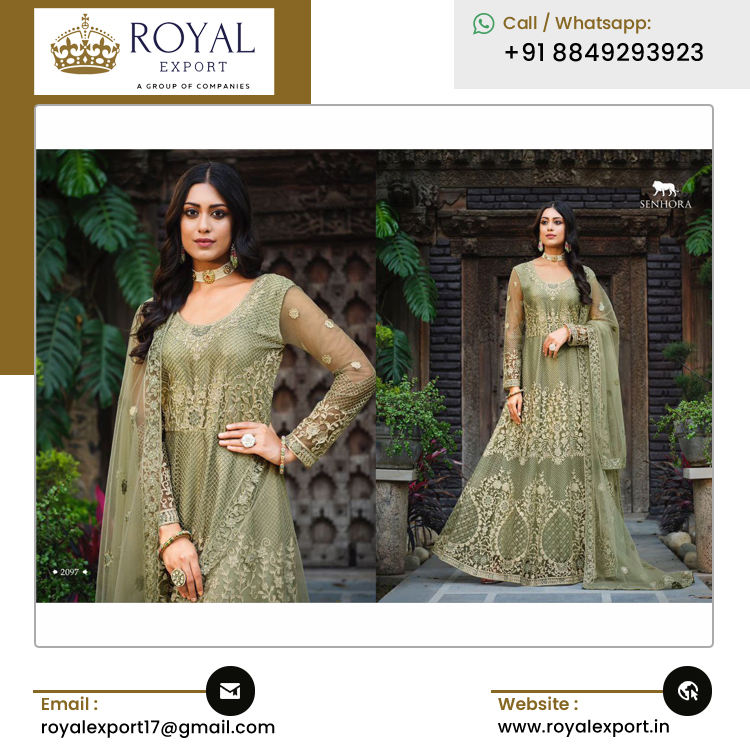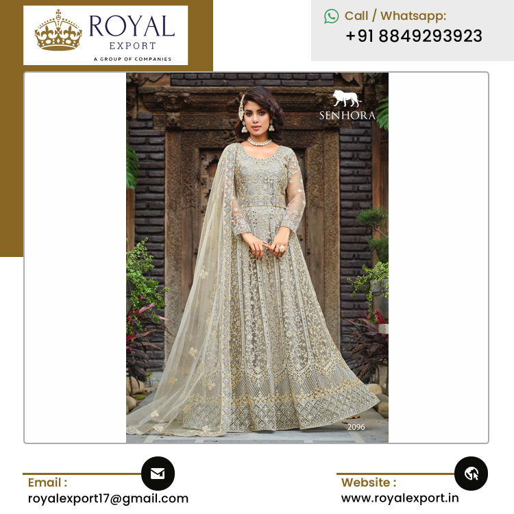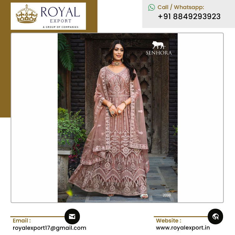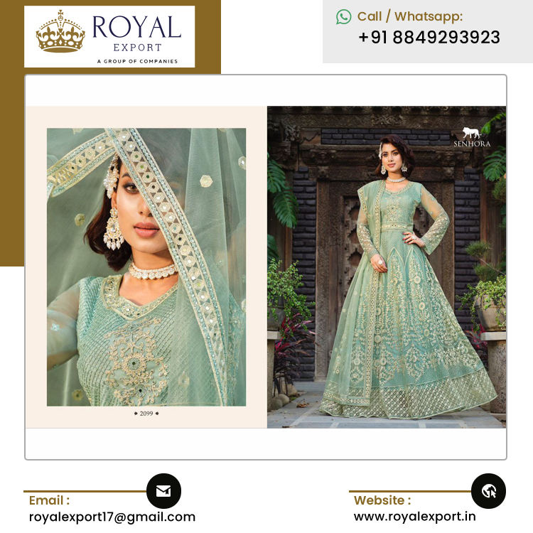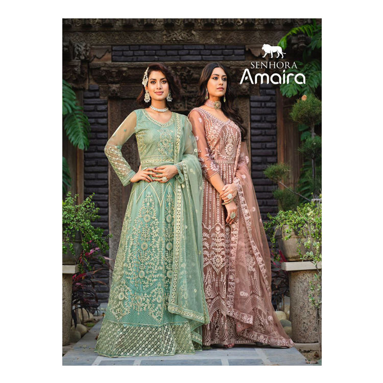 ชุดอนาราคัลีเจ้าสาวแบบยาว ผ้าเน็ตปักลายผีเสื้อแท้ ด้านหน้าและด้านหลังประดับด้วยงานปักหินอย่างประณีต สไตล์อินเดียดั้งเดิม