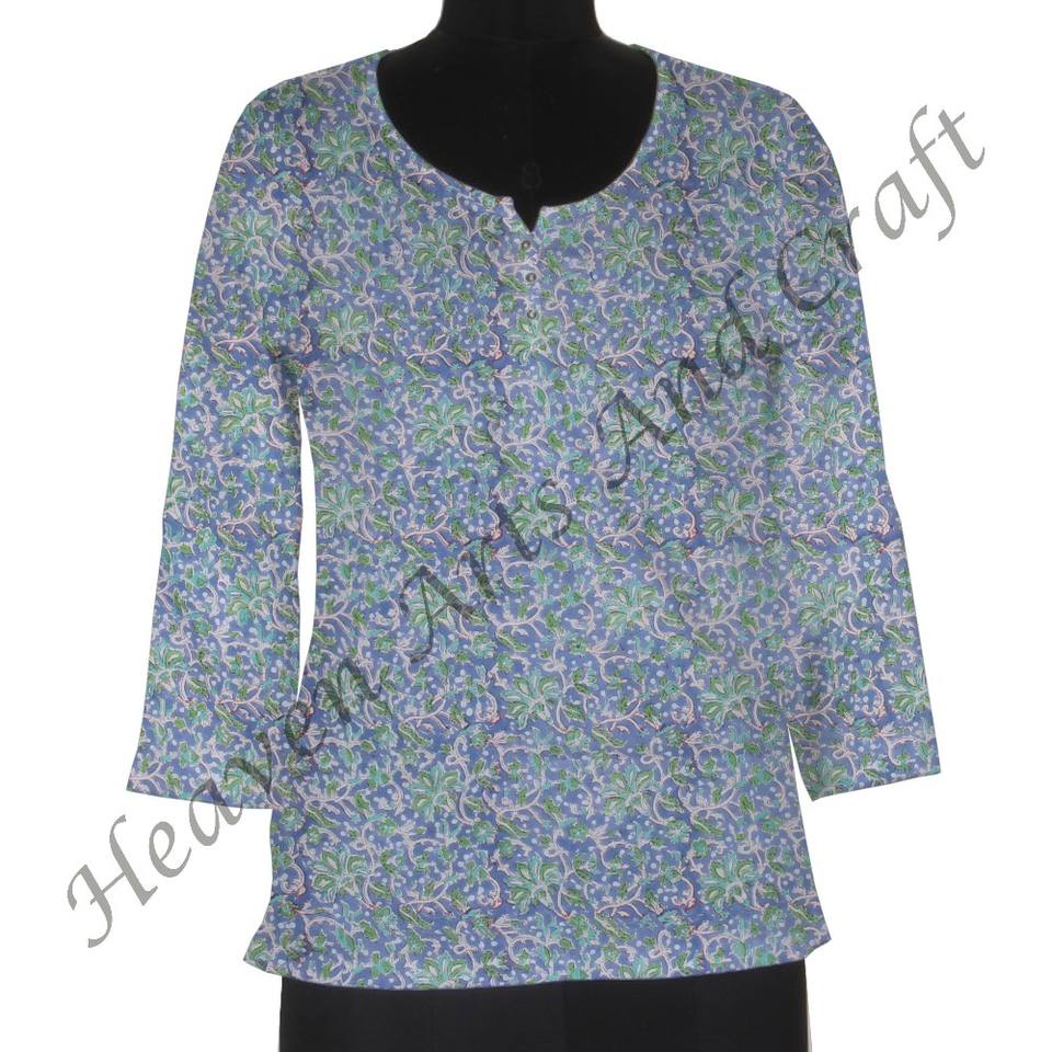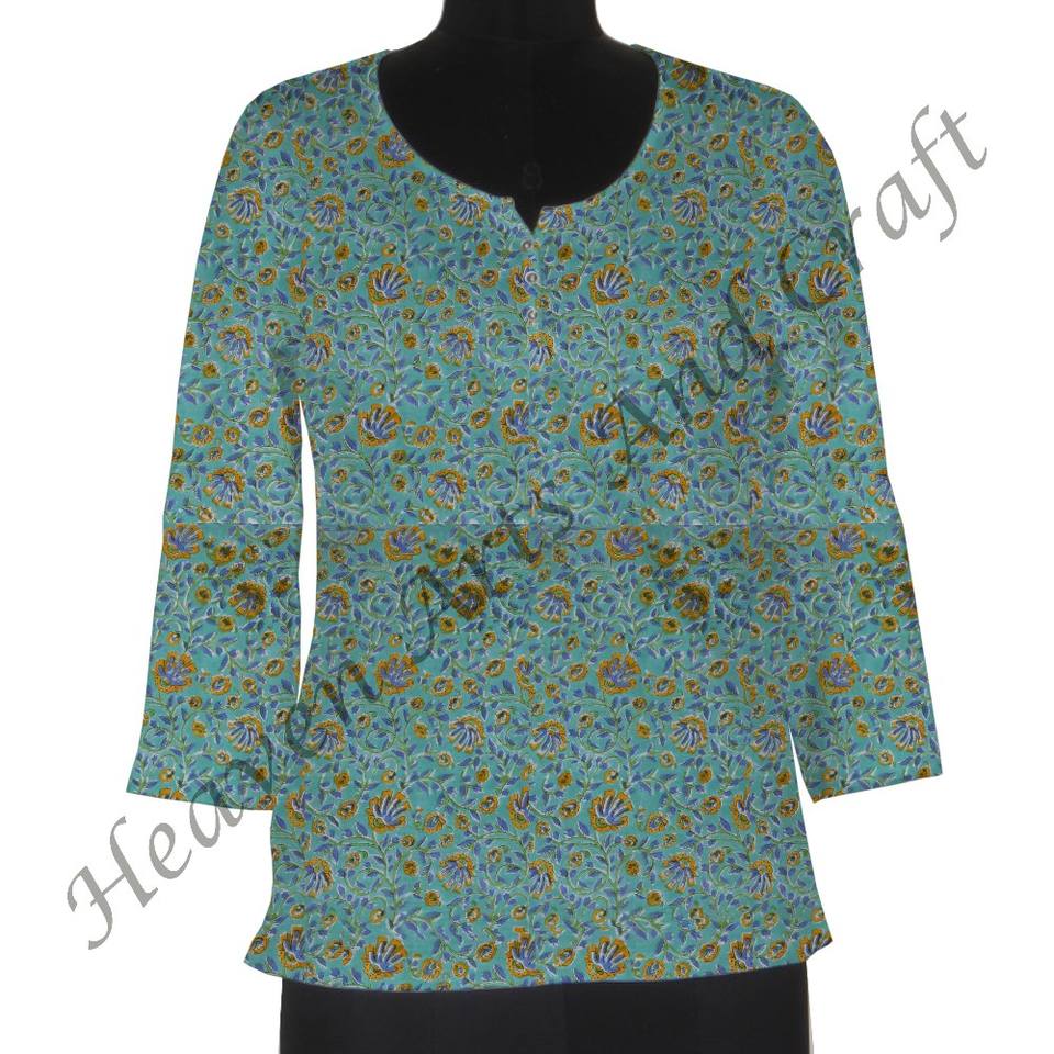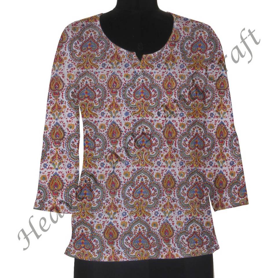 ชุดเดรสผ้าฝ้ายพิมพ์ลายเคอร์ทิสอินเดรสแขนสั้นพิมพ์ลายพื้นเมืองอินเดีย