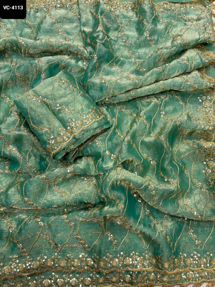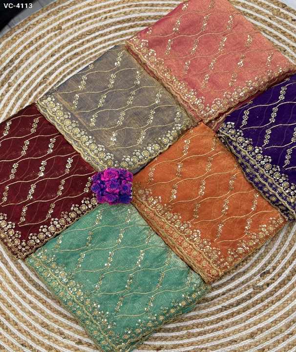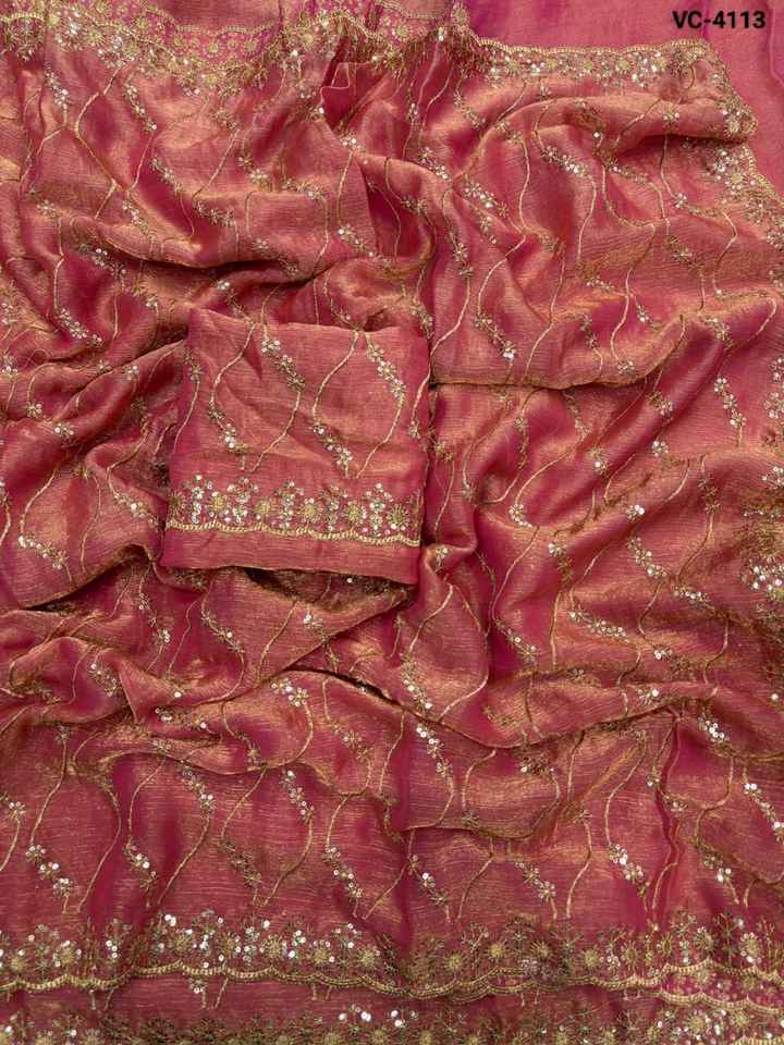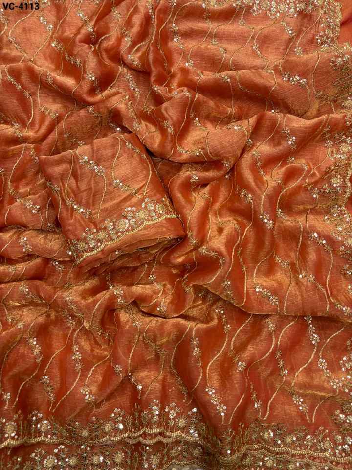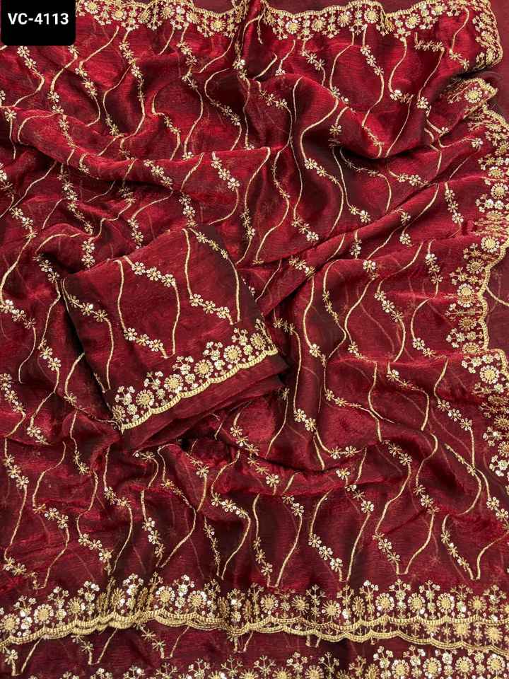 ชุดส่าหรีผ้าชีฟองไหมอินเดีย แต่งลายปักดิ้นทองและเลื่อม พร้อมเสื้อปักลายสำหรับงานแต่งงาน