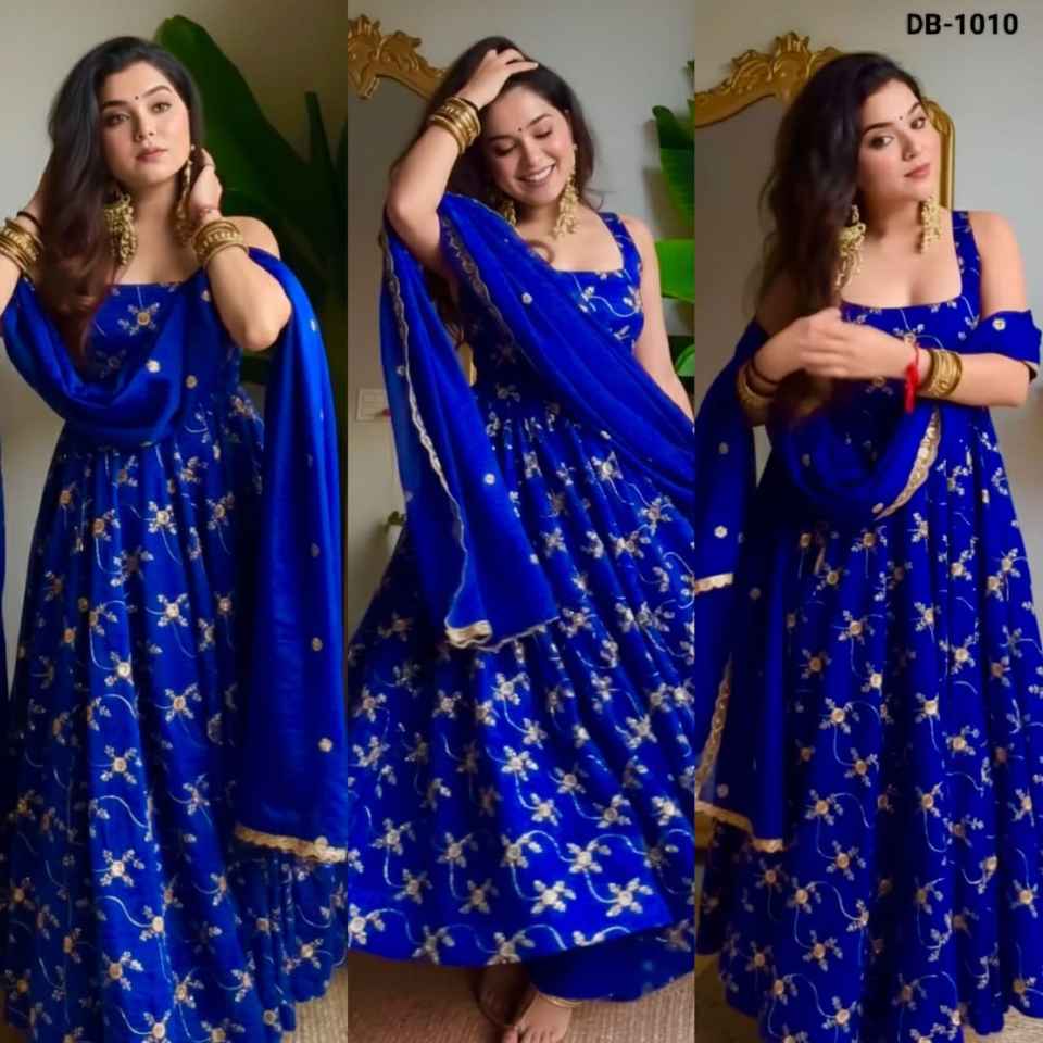 ชุดอินเดียแบบดั้งเดิม ผ้าไหมแฟนดี้ พร้อมสวมใส่ ชุดอนาร์กาลี ปักลายด้วยเลื่อม พร้อมผ้าคลุมไหล่ สำหรับงานแต่งงาน