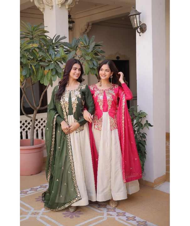 ชุดอานาร์กาลีแฟนซีสไตล์อินเดียประดับด้วยงานปักเลื่อมหรูหรา คอลเลคชั่นชุดสำหรับงานแต่งงาน ลายแก้วโรมันและคอสมอส