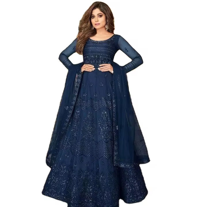 ชุดเดรสตาข่ายผ้า Dupatta ยาวผ้าตาข่ายแบบชนเผ่าอินเดียชุดทำงานทำจากหิน
