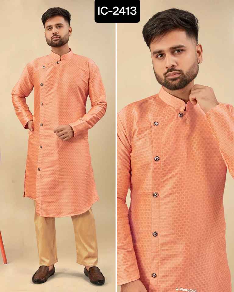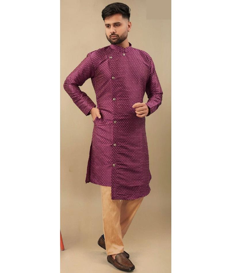ชุดแต่งกายชาวเผ่าอินเดียสำหรับผู้ชายชุดสวมใส่ผ้าไหมแจ็คการ์ดพร้อมชุดชุดนอนสำหรับงานแต่งงานและงานเทศกาล