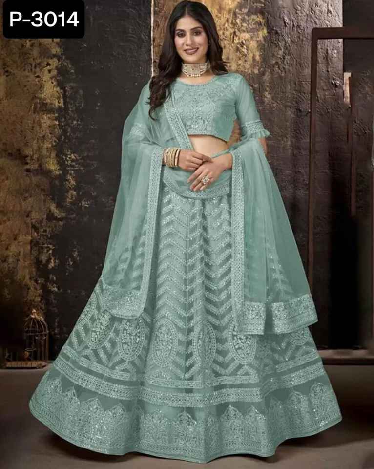 ชุดแต่งกายพื้นเมืองอินเดียทำจากวัสดุตาข่ายพร้อมโซ่ขนาดใหญ่ดีไซน์สำหรับงานและผ้าใบขอบ lehenga choli เสื้อเบลาส์แฟนซี