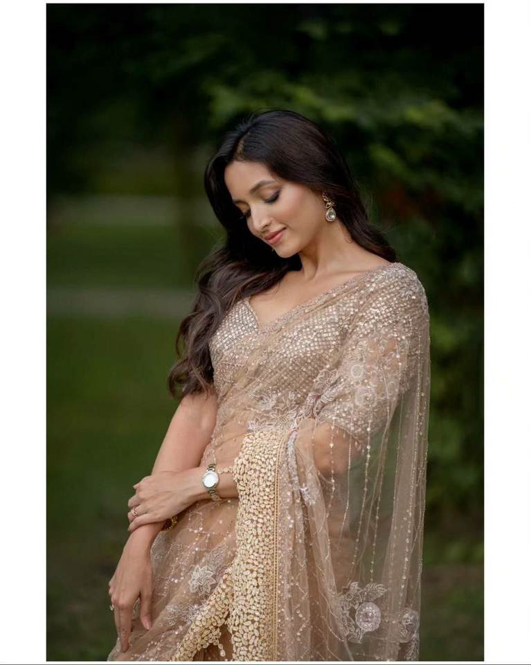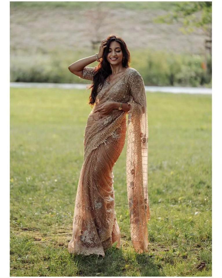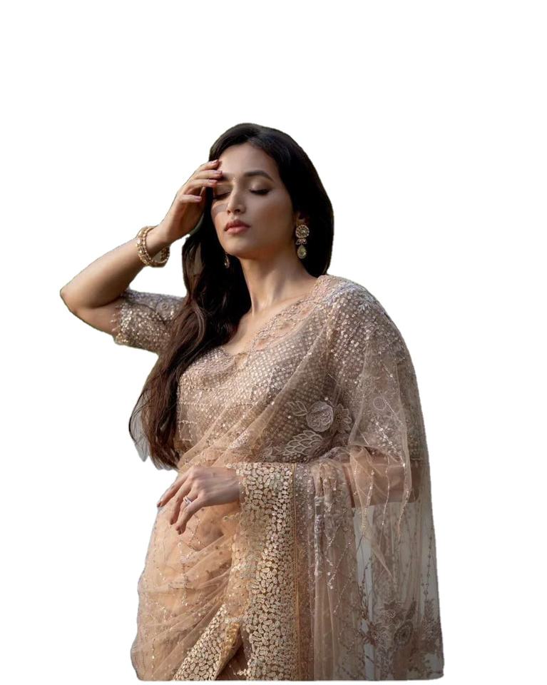 ชุดชาวเผ่าอินเดียผ้าตาข่ายนิ่มพร้อมชุดส่าหรีงานปักลายทำด้วยมือพร้อมงานปะขอบ
