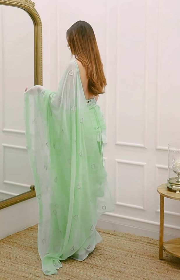ชุดส่าหรีผ้าจอร์เจียสำหรับงานปาร์ตี้ที่สวยงามสุดพิเศษของอินเดียพร้อมชุดเสื้อเบลาส์ดีไซน์เนอร์สีสันสดใสในราคาที่ดีที่สุด