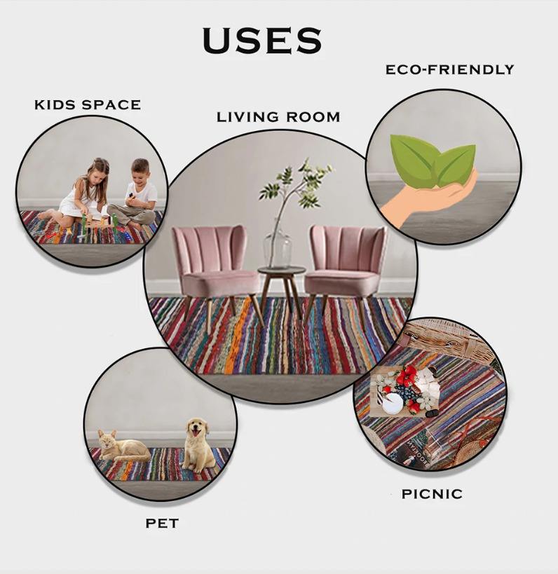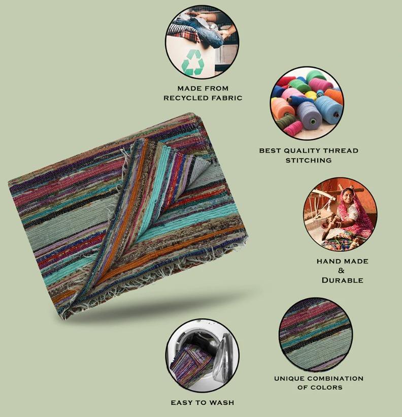 พรม Chindi สำหรับใช้ในบ้าน,พรมถักสไตล์ใหม่อินเดีย