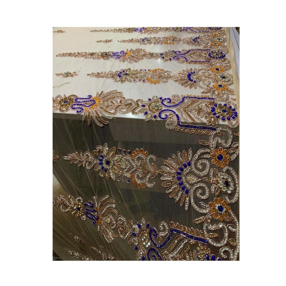 ผ้าลูกไม้ปักลายประดับลูกปัดจากอินเดีย น้ำหนักปานกลาง งานแฮนด์เมด สำหรับชุดแต่งงาน เครื่องประดับ และเสื้อผ้าเด็กผู้หญิง