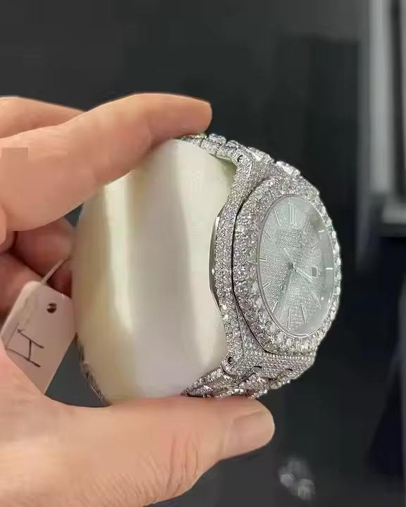 นาฬิกาผู้ชายสไตล์ฮิปฮอปประดับเพชรโมอิสซาไนต์แบบกำหนดเองจากผู้ส่งออกอินเดีย ตัวเรือนสแตนเลสสตีล ราคาแข่งขันได้