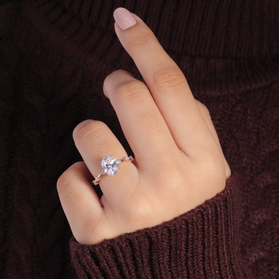 แหวนเพชรสามเม็ดสีโรสโกลด์