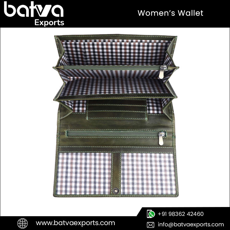 กระเป๋าเงินแบบมีกระดุมสั้นหนังแท้สไตล์วินเทจสำหรับผู้หญิง