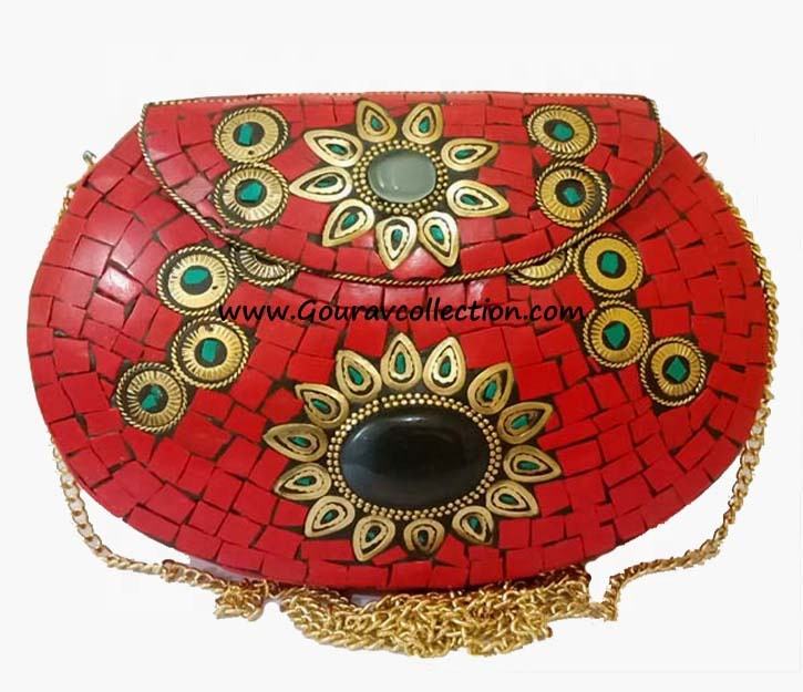กระเป๋าคลัทช์ของผู้หญิงทำจากโลหะโมเสกสีแดงหรูหรา GC-BG-542แฟชั่นแนวร็อค