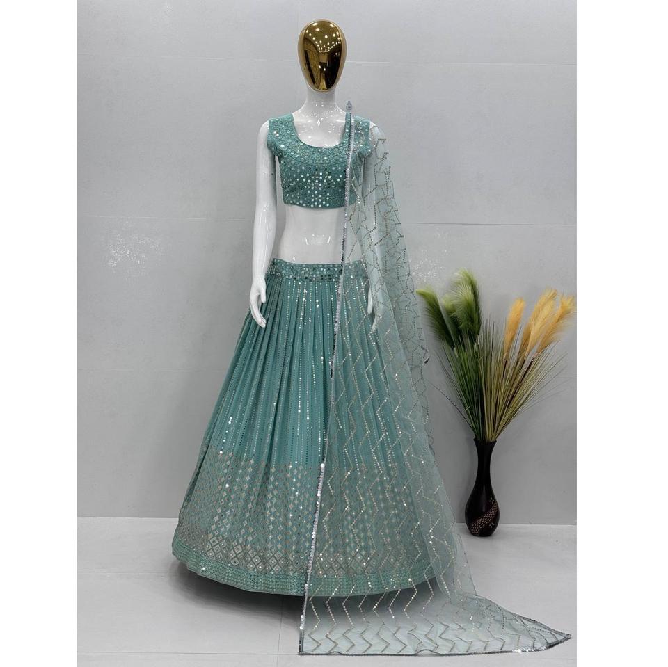 ผู้ส่งออกอินเดีย จำหน่ายชุดเลเฮนกาโชลีปักลายจอร์เจตต์ สำหรับงานแต่งงานและงานเฉลิมฉลอง ราคาดี
