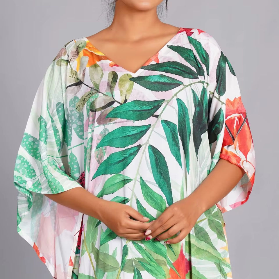 Indian Exporter Supply Plus Size Leaf Design Cotton Kaftan Robe, Floral Hand Block Print Loungewear for Bulk Price Available