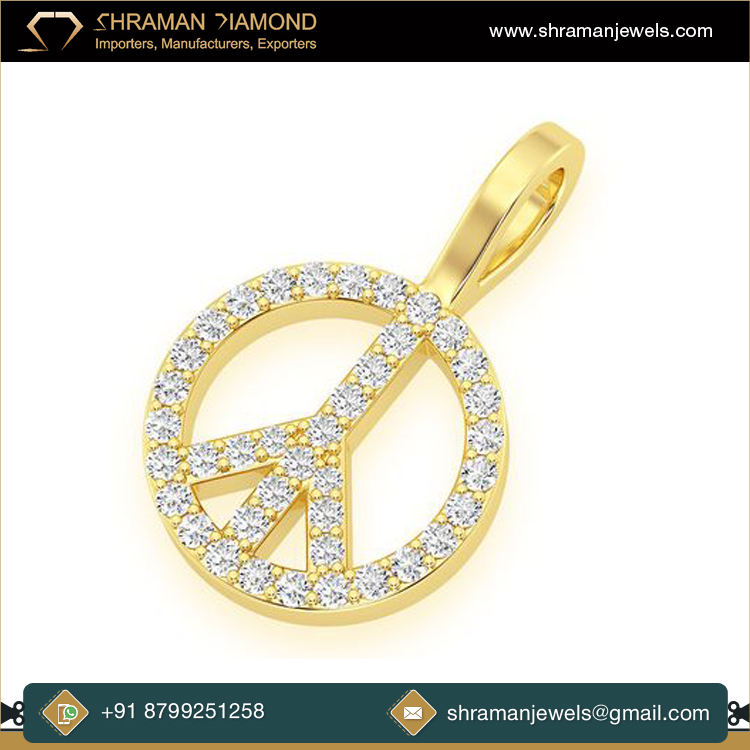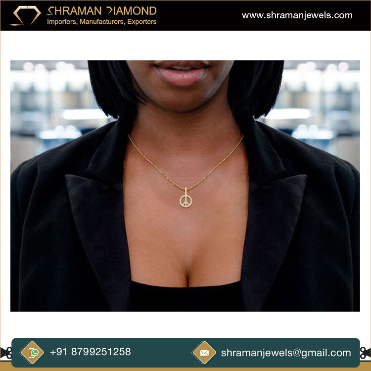 สร้อยคอแฟชั่นแบบ unisex ลายสัญลักษณ์สันติภาพแบบซ้อนชั้น ทองคำแท้ 10K ชุบโรเดียม ประดับเพชรแท้เจียระไนแบบบริลเลียนท์ สไตล์ฮิปฮอป ปรับแต่งได้