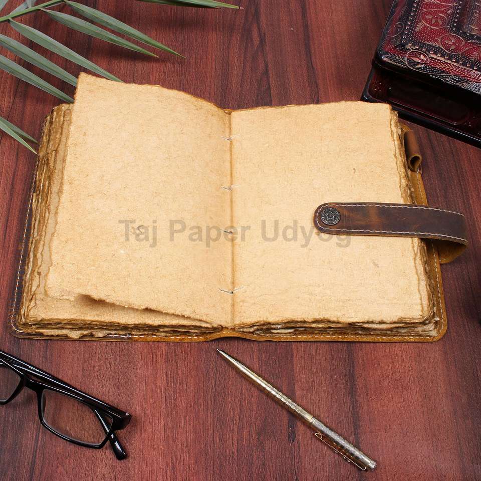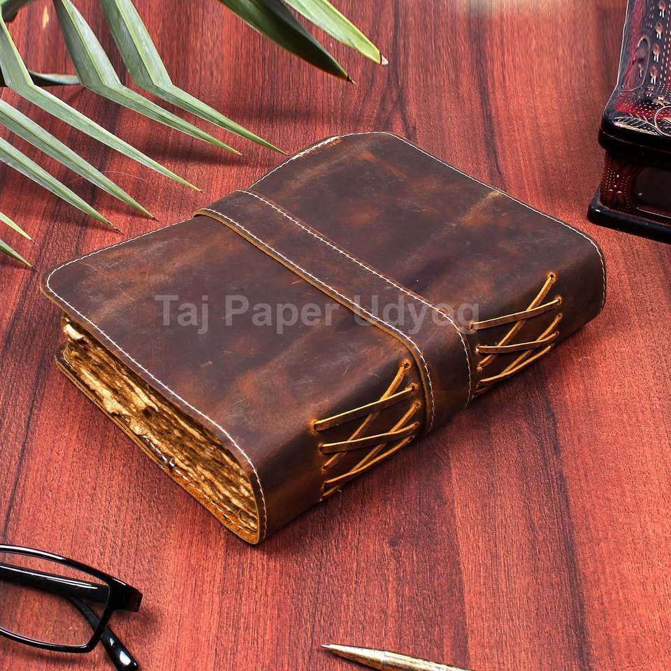 Vintage A5 Leather Journal with Deckle Edge Pages Old Fashionable Bound Paper PU School Office Personal Gift Use Indian Exporter