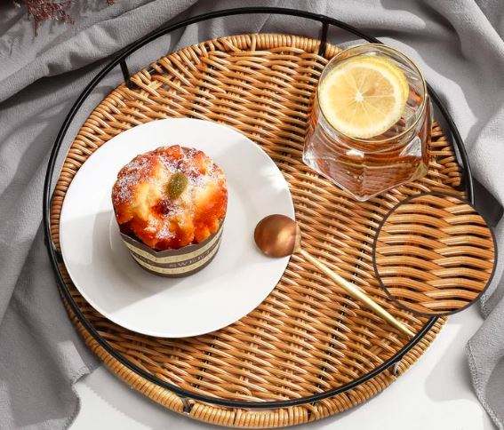 โรงงานอินเดียขายส่งหวายเสิร์ฟถาดหวายพร้อมที่จับรูปสี่เหลี่ยมผืนผ้าคุณภาพสูงในราคาสมเหตุสมผลเครื่องรับประทานอาหาร