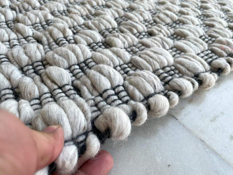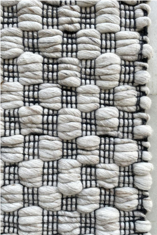 พรมขนสัตว์ทอมือสีดำขาวสไตล์ร่วมสมัยสุดหรูสำหรับใช้ภายในบ้าน ราคาโรงงานจากอินเดียโดยตรงจากผู้ผลิต