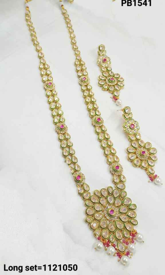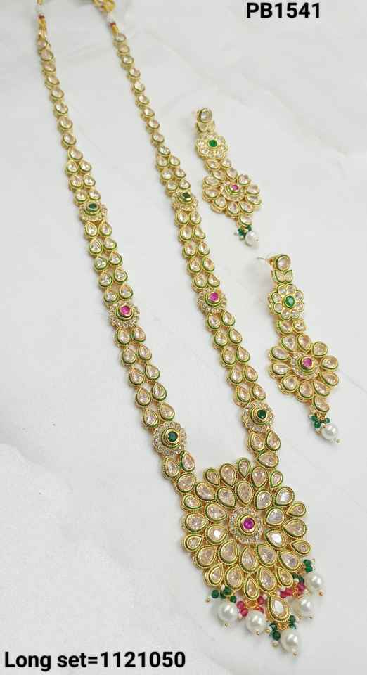 ชุดสร้อยคอยาวประดับมุกโมติไข่มุกและ kundan สีทองมุกมุกพร้อมต่างหูเข้าคู่กัน