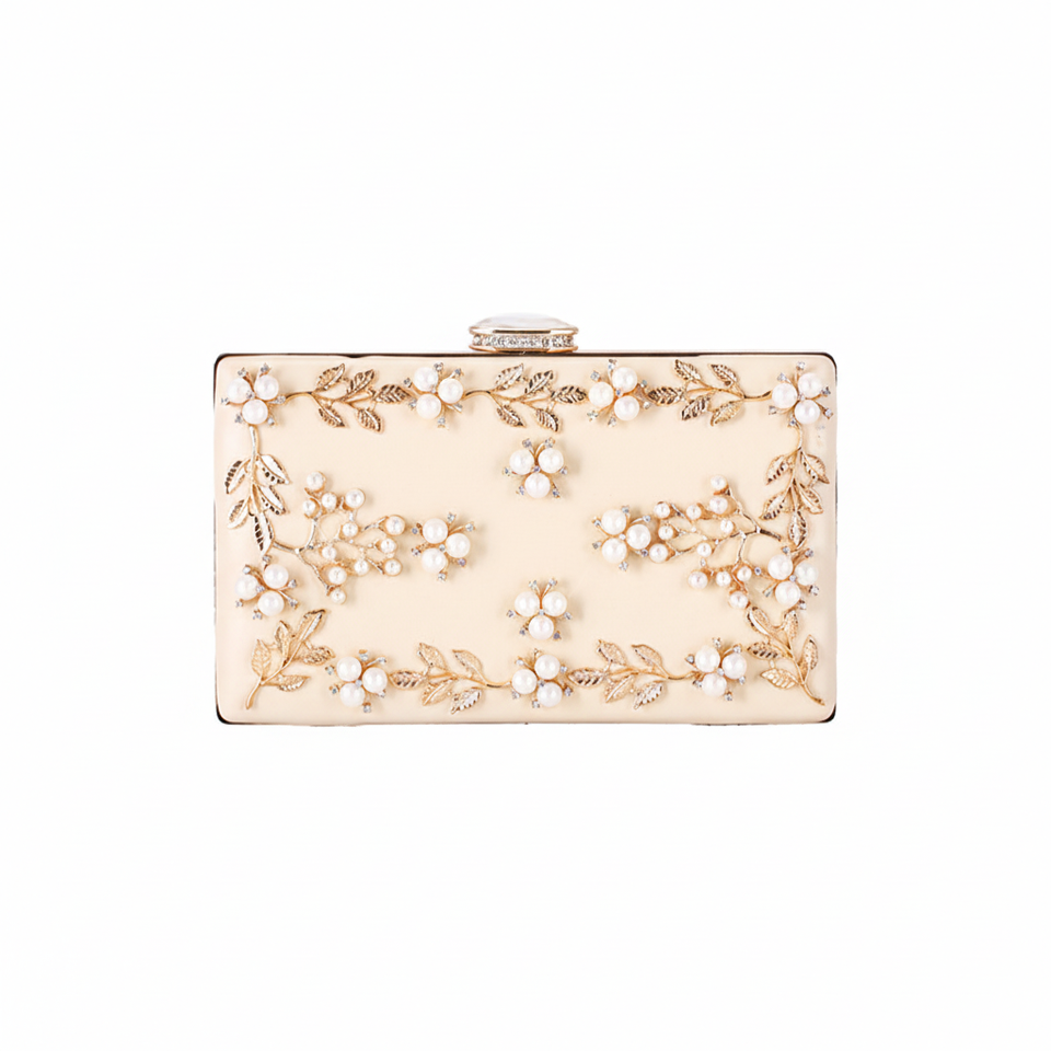 Indian Fashion Elegant Women Clutch Hand Bag Luxury Satin & Metal Golden Thread Embroidery Wedding Evening Bag