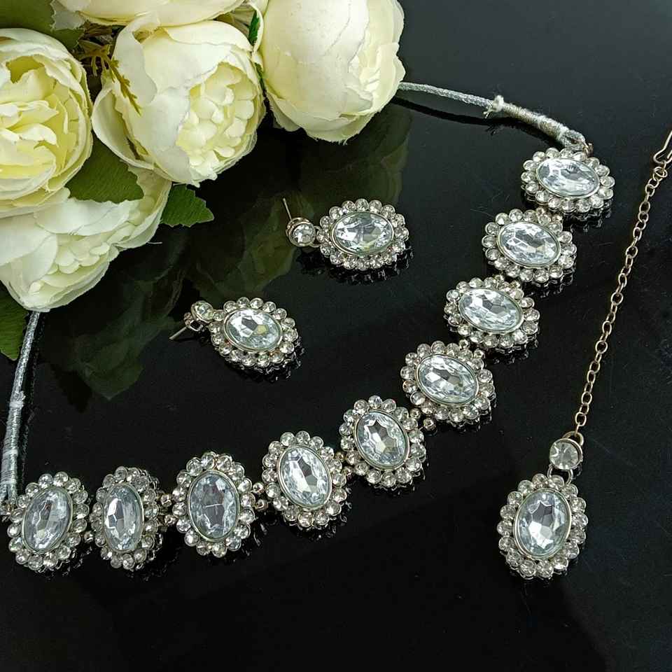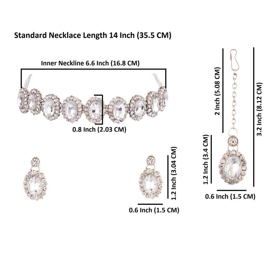 เครื่องประดับแฟชั่นอินเดียชุดเครื่องประดับคริสตัลพลอยเทียมสร้อยคอแต่งงานต่างหู mangtikka กับเครื่องประดับหัวโซ่สำหรับผู้หญิง