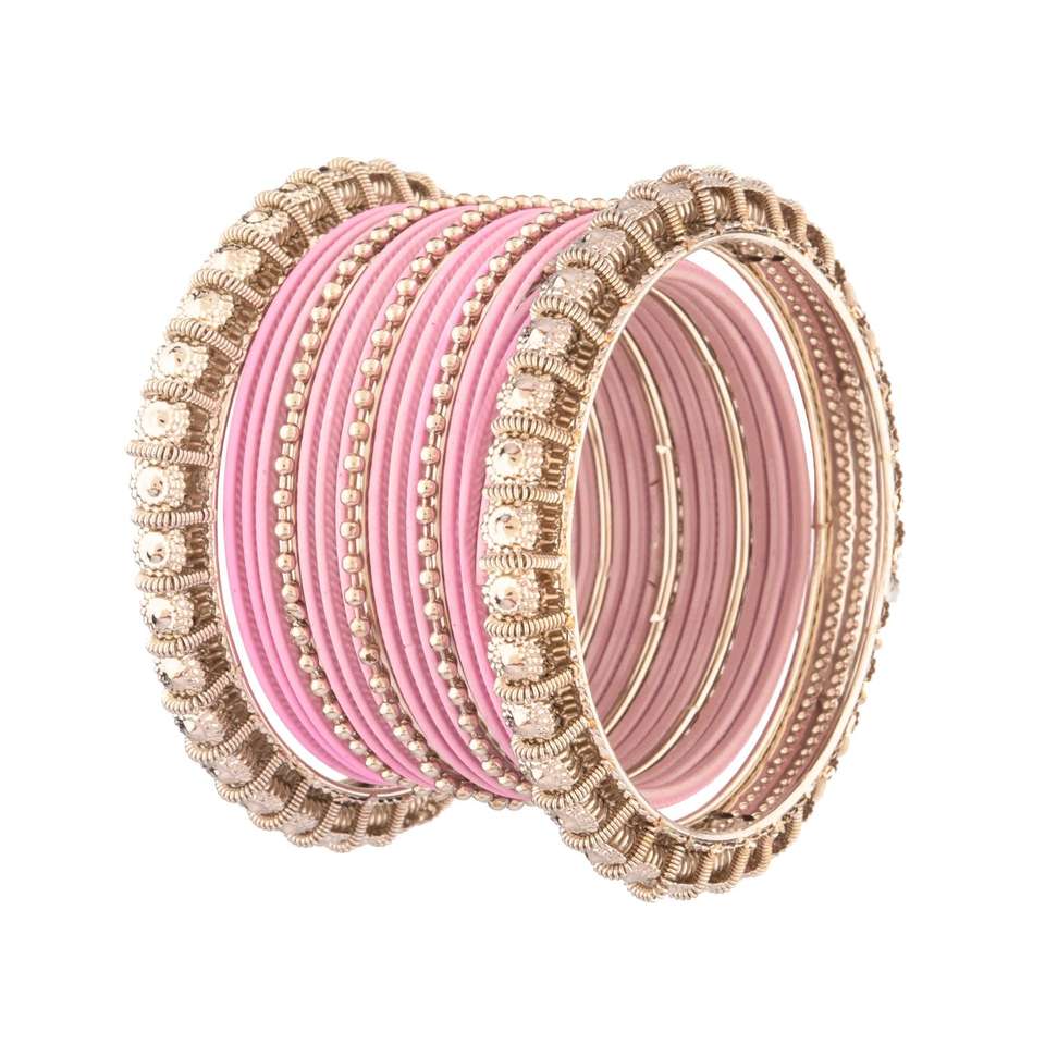 Textured embellished silver bangles with matte metal bangles