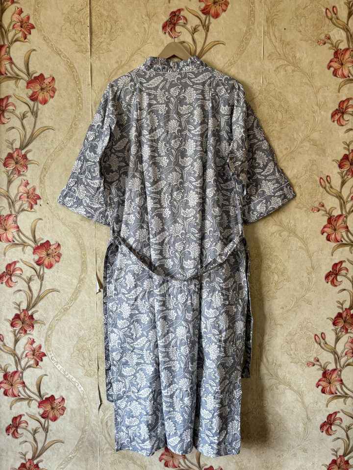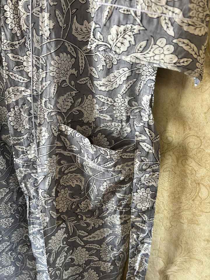 ชุดกิโมโนผ้าฝ้ายพิมพ์ลายทำมือสำหรับผู้หญิงในเทศกาลอินเดีย แห้งเร็ว คอวี เหมาะสำหรับใส่ชายหาดช่วงฤดูร้อน ความยาวเต็มตัว