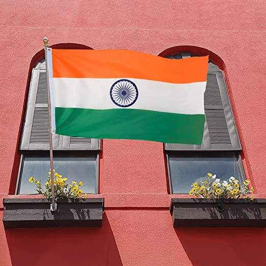 ธงชาติอินเดียปักลาย USA TOP FLAGSINC ธงชาติอินเดียแบบสามสี ขนาด 3x5 ฟุต สำหรับใช้งานกลางแจ้งอย่างหนัก พร้อมห่วงทองเหลือง น้ำหนัก 350 กรัม