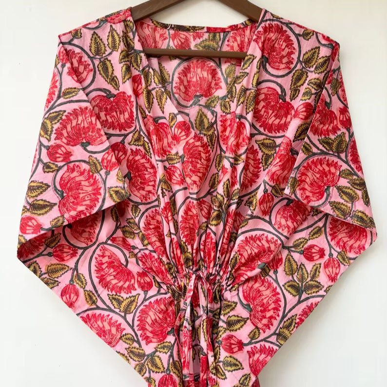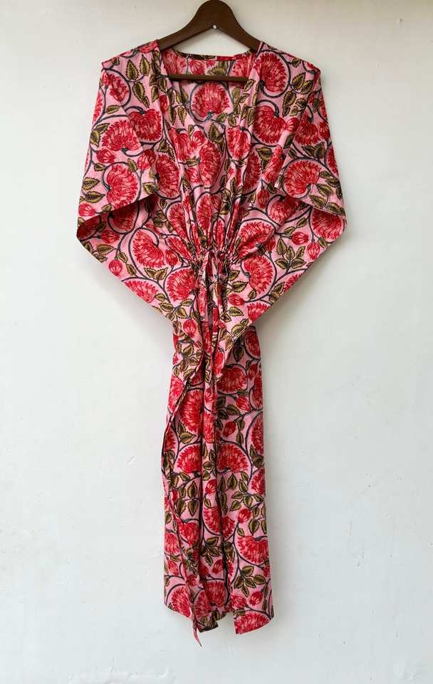 ชุดเดรสยาวแบบคาฟตันลายดอกไม้สไตล์อินเดีย ผ้าฝ้ายแท้ 100% สำหรับใส่เที่ยวทะเลหรือชายหาด เหมาะสำหรับผู้หญิง