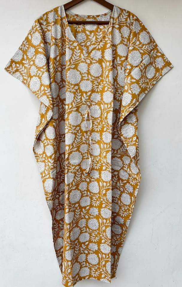 ชุดเดรสยาวผ้าฝ้ายลายดอกไม้สไตล์อินเดีย เหมาะสำหรับใส่คลุมชุดว่ายน้ำ ใส่สบายสำหรับคุณแม่ตั้งครรภ์ และเป็นชุดนอนได้