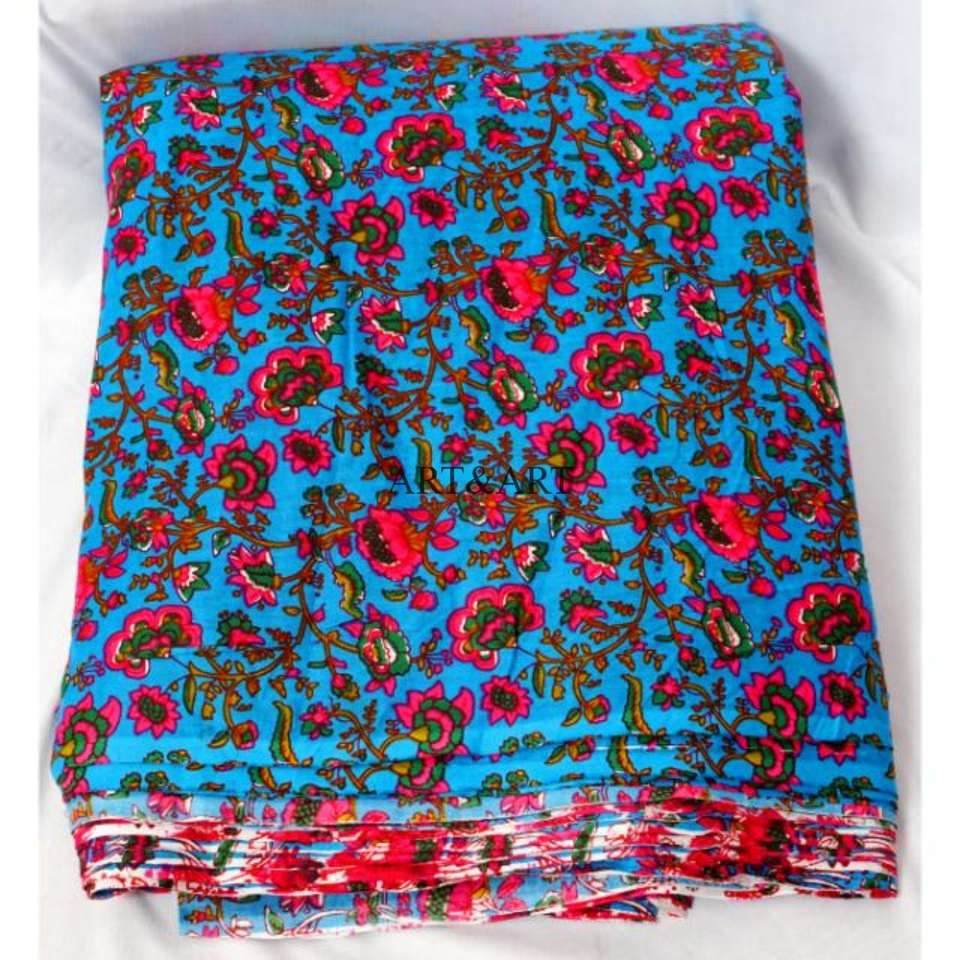 ผ้าฝ้ายพิมพ์ลายดอกไม้แบบอินเดีย 100% ขายเป็นหลา ผ้าพิมพ์ลายแบบไจปุรีสำหรับเสื้อผ้าผู้หญิง ผ้าสำหรับใส่ในฤดูร้อนสุดหรู
