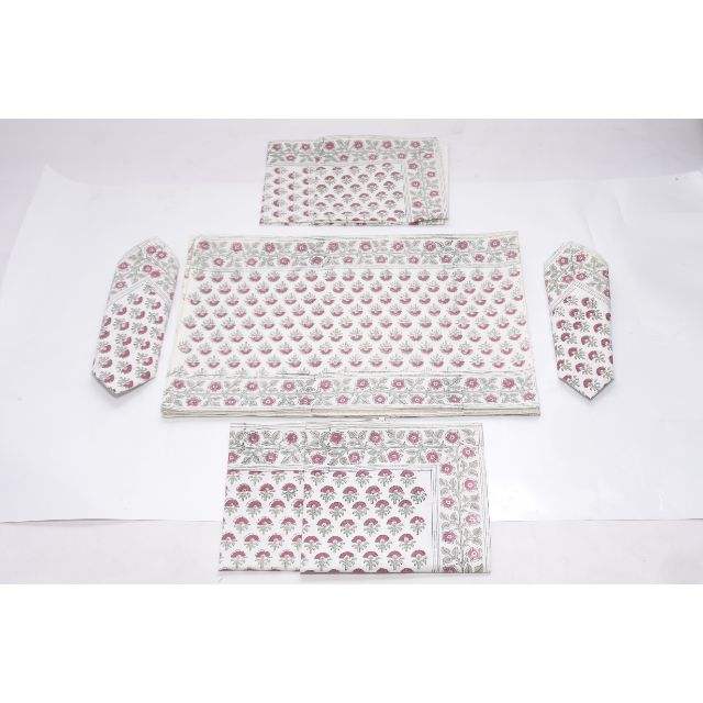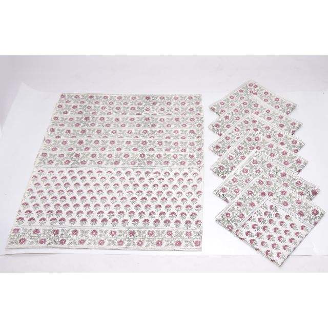 ผ้าเช็ดปากลายดอกไม้แบบอินเดีย,ชุดโต๊ะอาหารและผ้าเช็ดปากลายดอกไม้ทำจากผ้าฝ้าย12ชิ้นโต๊ะกินข้าวสไตล์ชาติพันธุ์วันหยุด