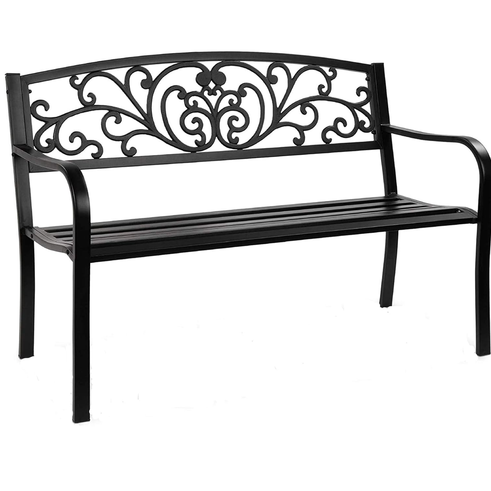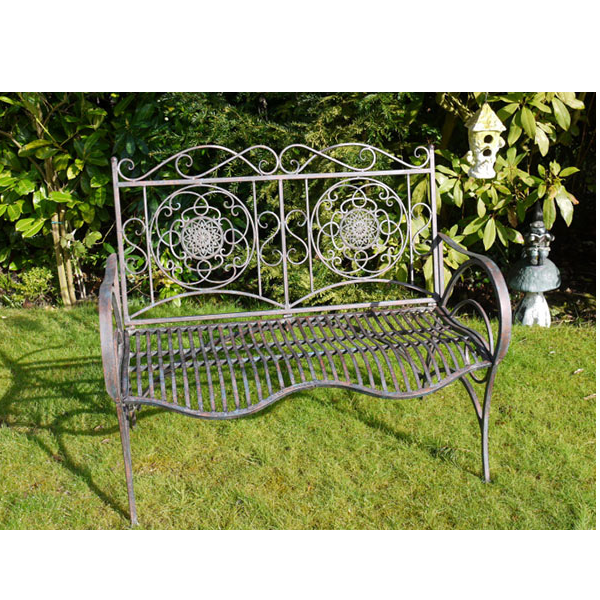 ม้านั่งโลหะในสวนกลางแจ้ง
