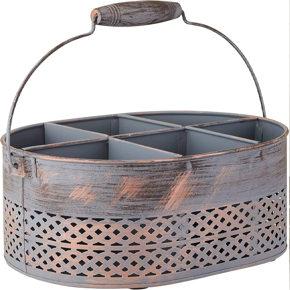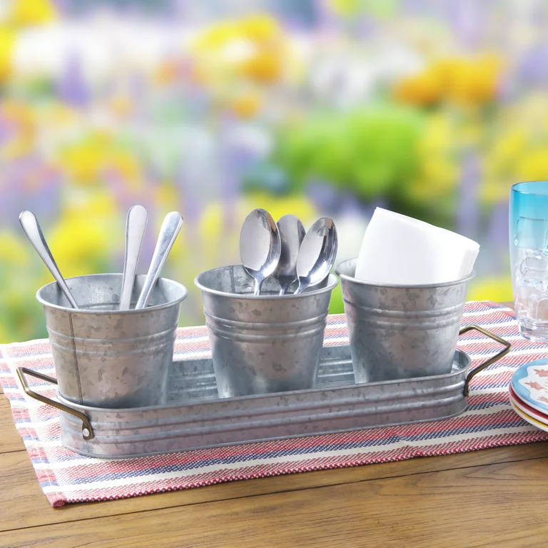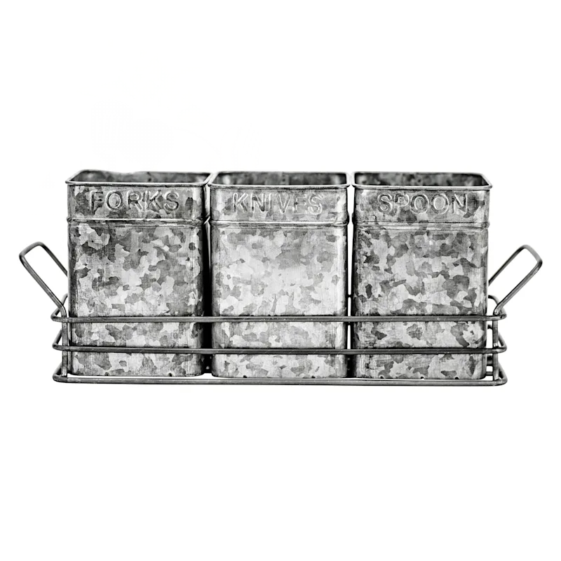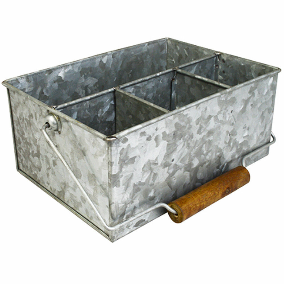 Indian Galvanized Metal Caddy Kitchen Tools Organizer Countertop Utensil Caddy for Parties for Napkins Plates Cutlery Flatware