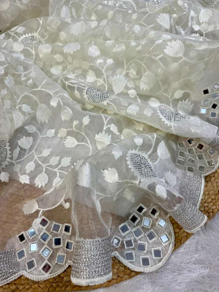 ชุดส่าหรีสีขาวผ้าโปร่งบางแบบอินเดียพร้อมด้ายงาน zaal เสื้อแฟนซีสุดพิเศษชุดปาร์ตี้ชาติพันธุ์สำหรับผู้หญิง