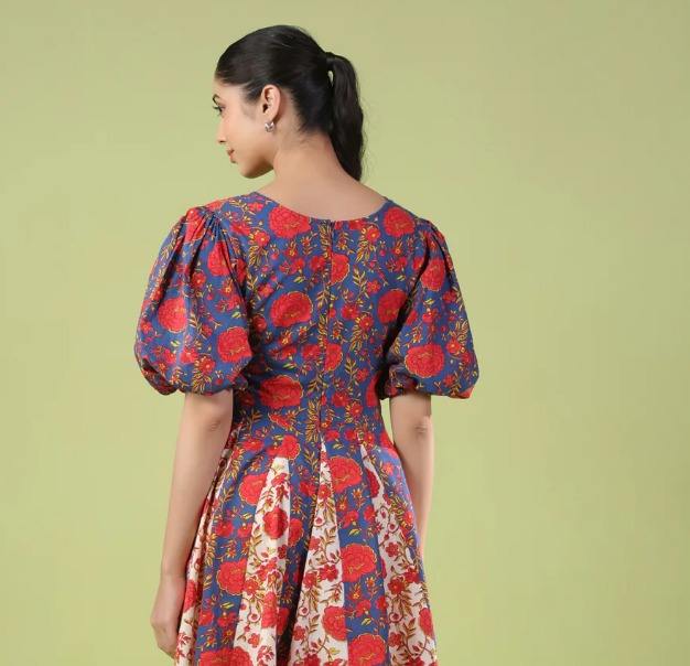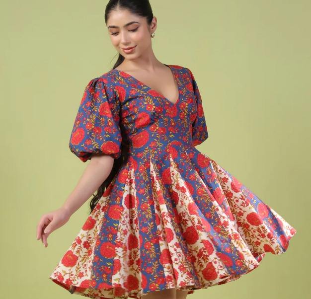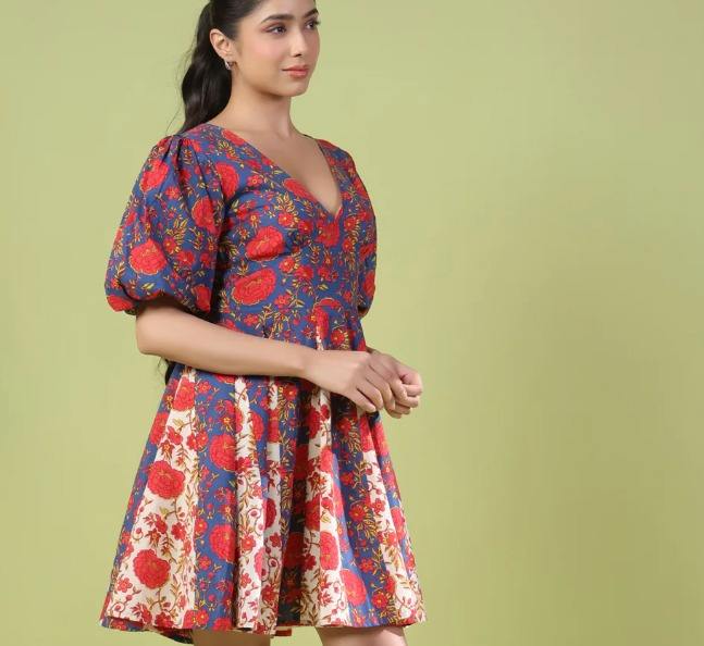 ชุดเดรสผ้าฝ้ายสไตล์อินเดียเดรสสั้นพิมพ์ลายดอกไม้ชุดเดรสสั้นสำหรับฤดูร้อนของขวัญงานแฮนด์เมดมีสไตล์สำหรับเธอ