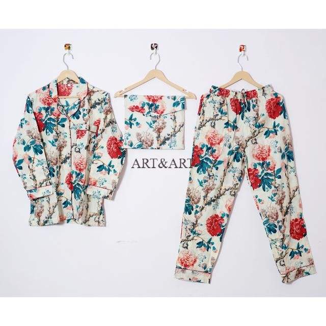ชุดนอนผ้าฝ้ายพิมพ์ลายบล็อกอินเดีย ดีไซน์ทันสมัยสำหรับผู้หญิงและผู้ชาย ระบายอากาศได้ดี แห้งเร็ว เนื้อผ้านุ่ม 100% ผ้าฝ้าย
