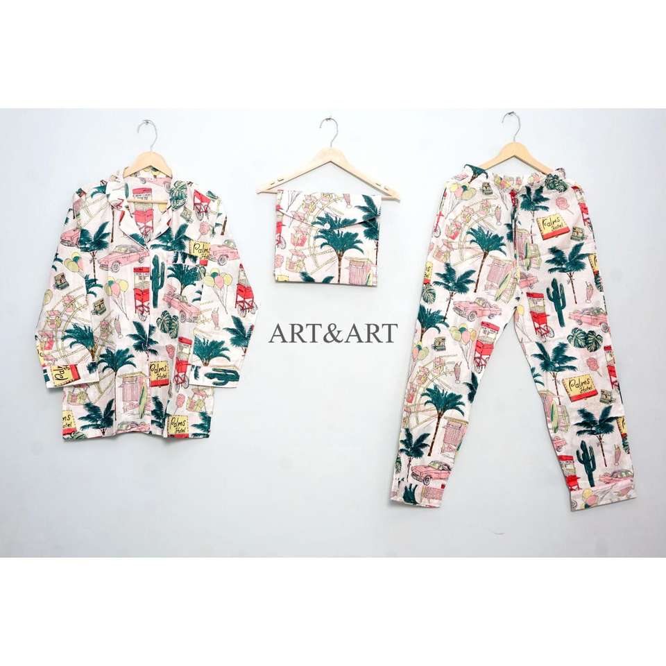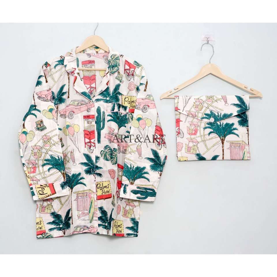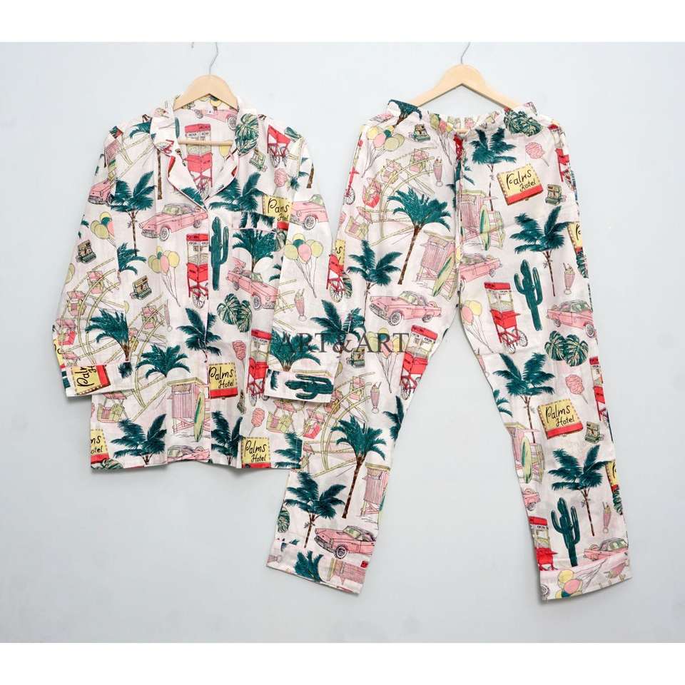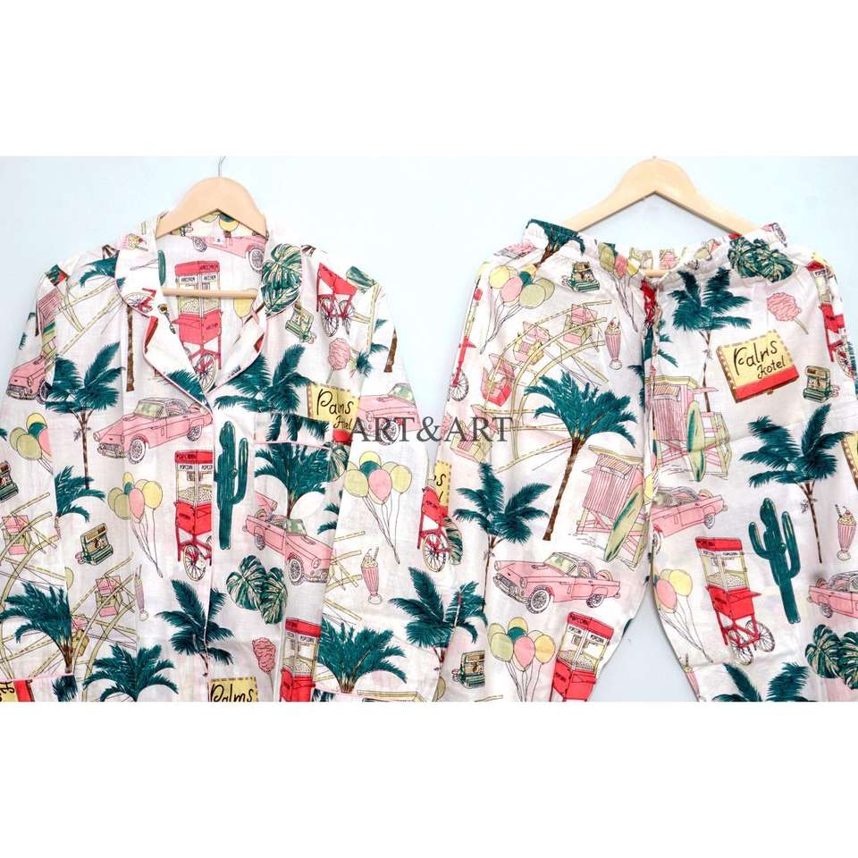 Indian Hand Block Cotton Pajama Set Stylish Fashion-Forward Night Wear for Women and Men Breathable 100% Cotton for Summer