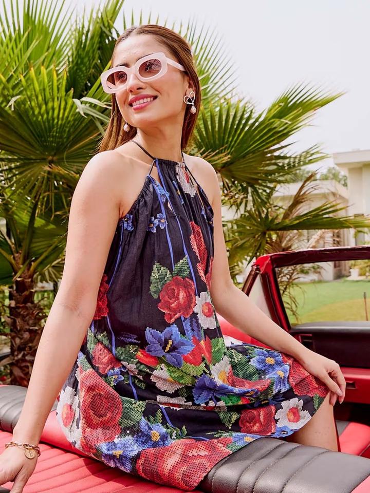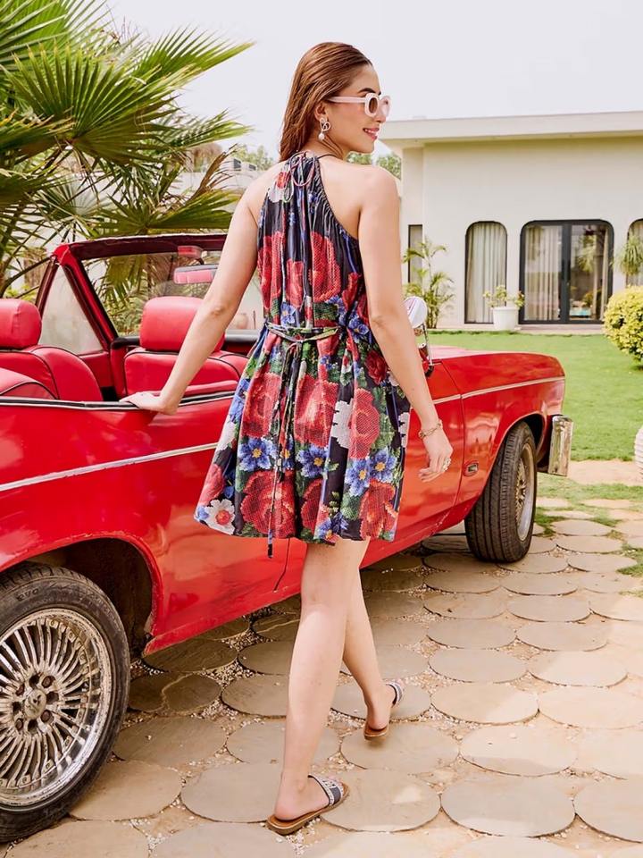 ชุดเดรสสั้นผ้าฝ้ายแบบสั้นสำหรับเจ้าสาวในอินเดียของขวัญแต่งงานพิมพ์ลายดอกไม้ชุดฤดูร้อนและชายหาด