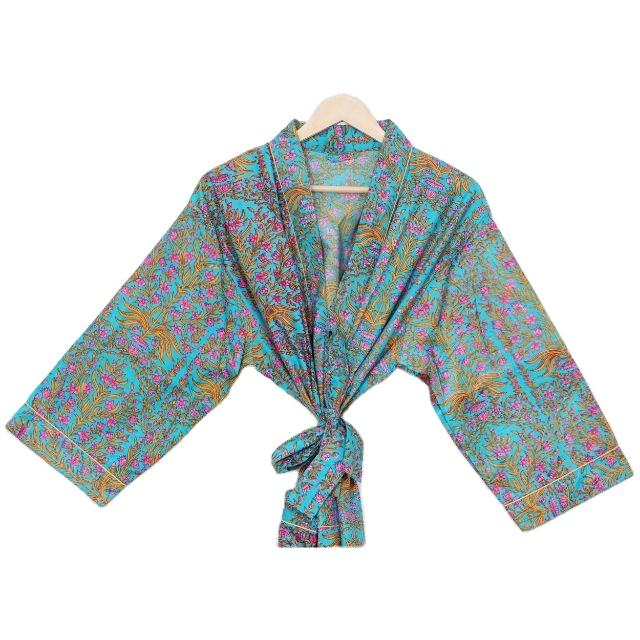 ชุดคลุมกิโมโนผ้าฝ้ายพิมพ์ลายแบบอินเดียสำหรับผู้หญิง ไซส์ฟรี เหมาะสำหรับใส่คลุมตัวไปชายหาด ชุดนอน ชุดลำลอง ช่วงฤดูใบไม้ผลิและฤดูร้อน